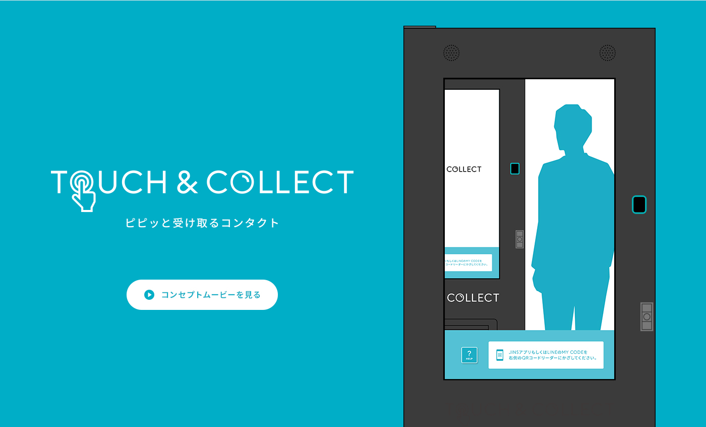 日本初のコンタクトレンズ自販機「TOUCH & COLLECT」登場。JINSアプリやLINEからQRコードを読み取って「JINS 1DAY」レンズを購入できます。このシステムにより、購入プロセスが合理化され、レンズをすばやく簡単に購入できるようになります。